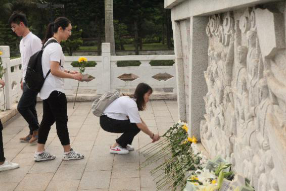 活动当日,学院各支部党员代表来到解放海南岛战役烈士陵园内。纪念碑前奏国歌,纪念碑下哀英烈。“渡海英雄永垂不朽”矗立在眼前,各位学生党员依次到烈士纪念碑下敬献菊花表达对革命先烈的深切哀思和崇高敬意。