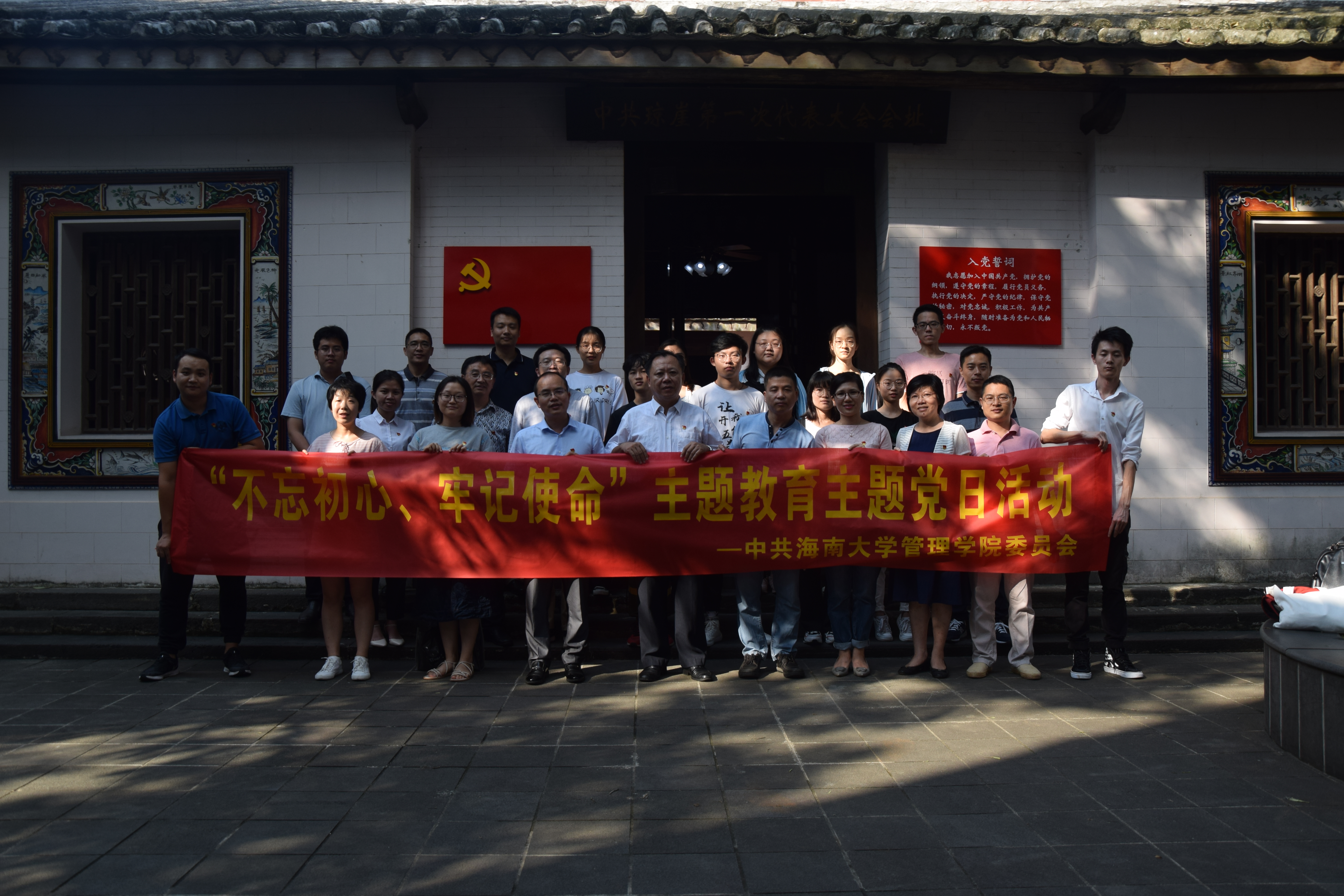 为深入学习贯彻习近平新时代中国特色社会主义思想和习近平总书记在“不忘初心、牢记使命”主题教育工作会议上的重要讲话精神,深入贯彻落实中央的决策部署及省委、学校党委的要求,10月18日下午,学院党委书记邢谷川、学院领导班子成员、党支部书记和学生党支部支委前往中共琼崖第一次代表大会旧址开展琼崖革命精神体验教育。