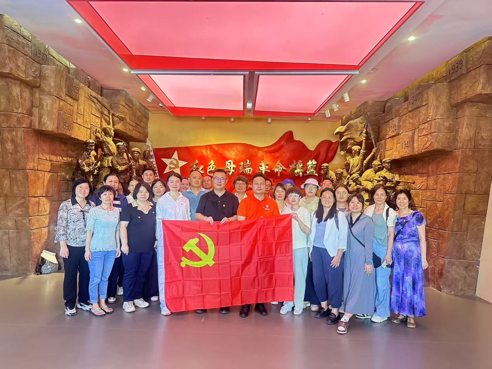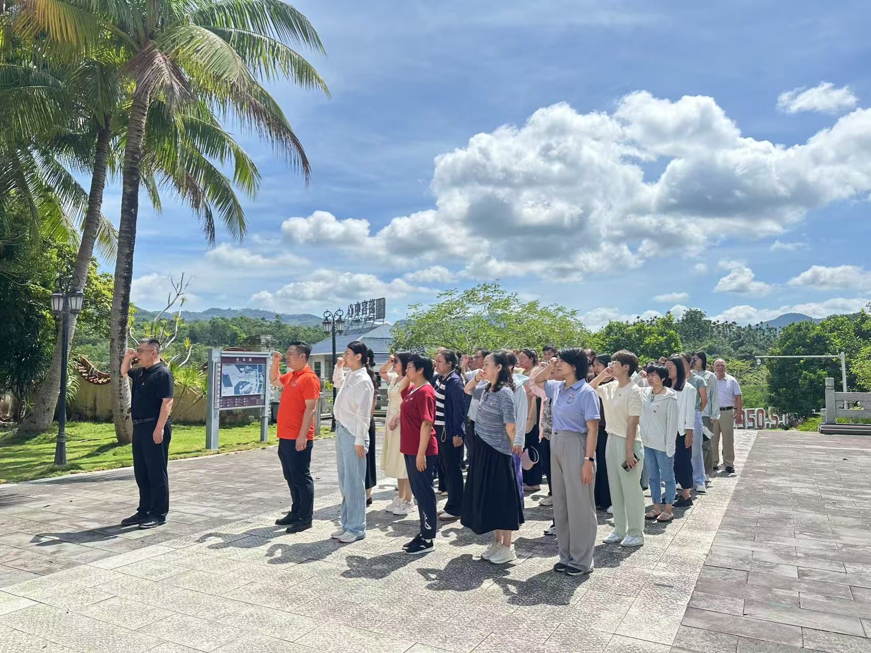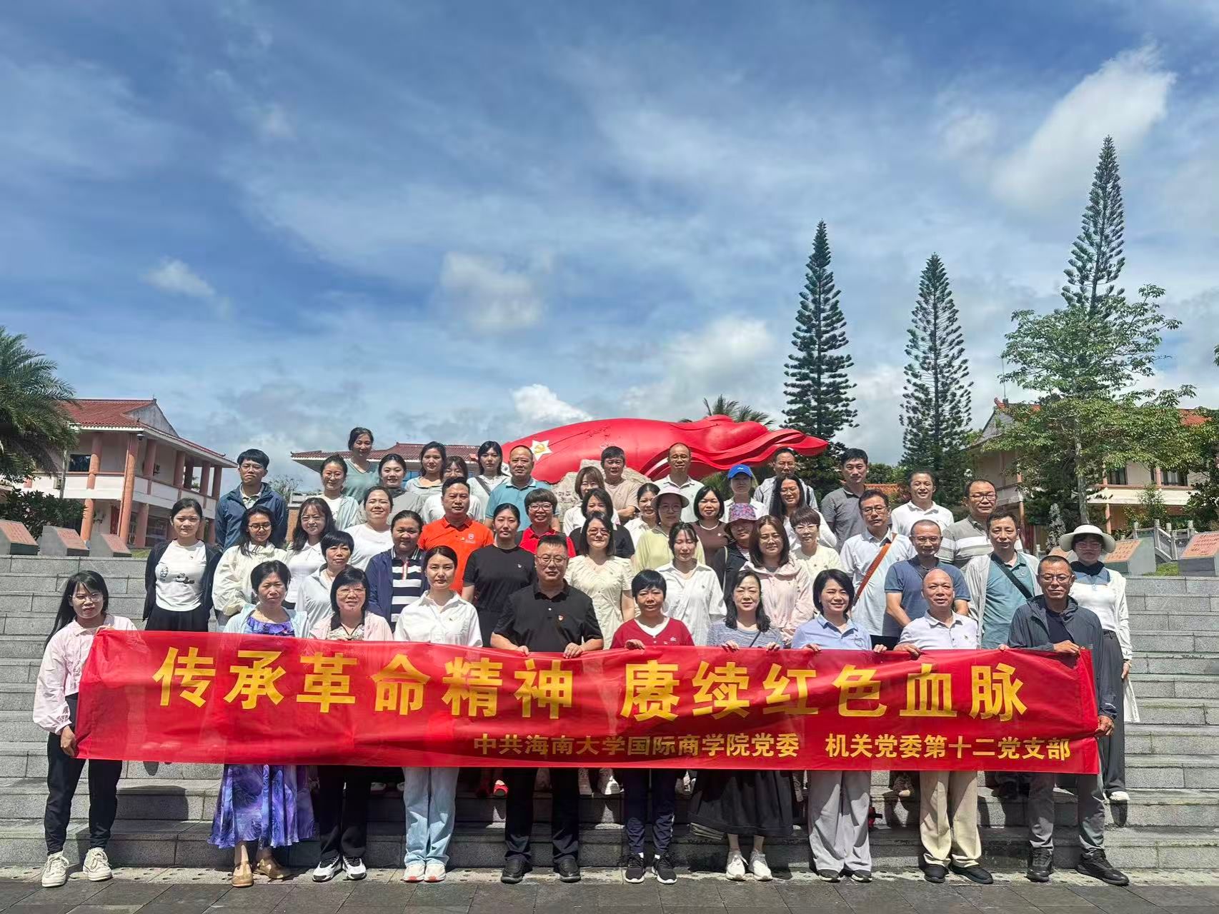 在庄严肃穆的母瑞山纪念园中,全体党员瞻仰革命旧址,聆听红色故事,重走长征路程,切身感受革命先辈跋涉行军、不畏艰险的奋斗精神。活动在重温入党誓词中达到高潮,铿锵誓言回荡山谷,深刻唤醒了每一位同志的理想与信念。通过沉浸式体验,大家深切体悟到琼崖革命“二十三年红旗不倒”的精神伟力,经历了一场深刻的思想洗礼和党性教育。