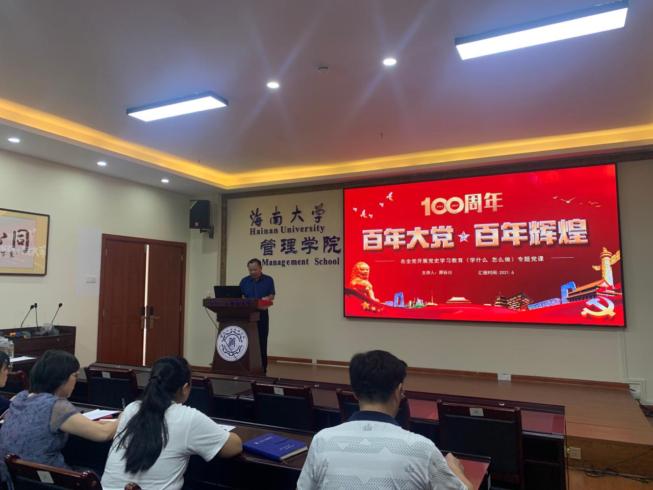 622日下午,管理学院党委书记邢谷川在社科楼B112讲授以“百年大党,百年辉煌”为主题的党史学习教育专题党课。学院各党支部书记、支部委员参加。