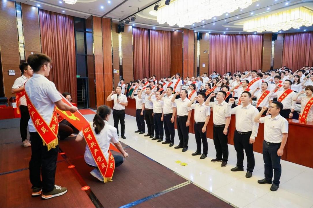 大会在庄严的国歌中拉开帷幕。面对庄严的党旗,全体起立,学院党建组织员李子昂领誓,新发展党员庄严宣誓,老党员重温入党誓词。