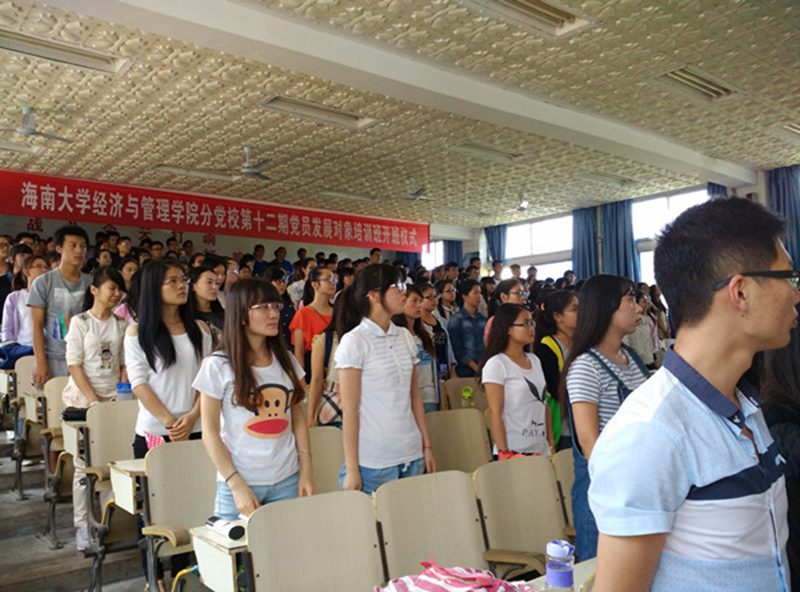 为加强学生党员发展对象的党性意识,深化党的基本理论、基本路线和基本纲领的教育,4月14日下午,经济与管理学院分党校2014-2015学年第二期(总第十二期)海甸校区党课开班仪式于海甸1教101教室隆重举行。参加此次开班仪式的有河南省濮阳市文联主席王魁英、学工办张乃脆老师、学生党建领导小组喻吉祥、樊龄蔚以及本期近200名党员发展对象。会议由学工办张乃脆老师主持。