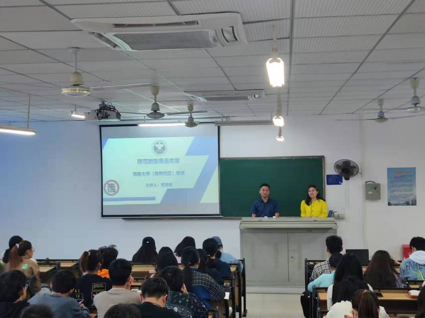 为提高学生对毒品、艾滋病的认识和重视,增强学生的识毒、拒毒、禁毒意识,提高防控艾滋和自我保护意识,12月7日下午,管理学院联合海南省禁毒委员会办公室与5教202开展禁毒讲座,讲座由省禁毒办蔡克帆主讲,管理学院学工办主任肖亚奇参加此次讲座。