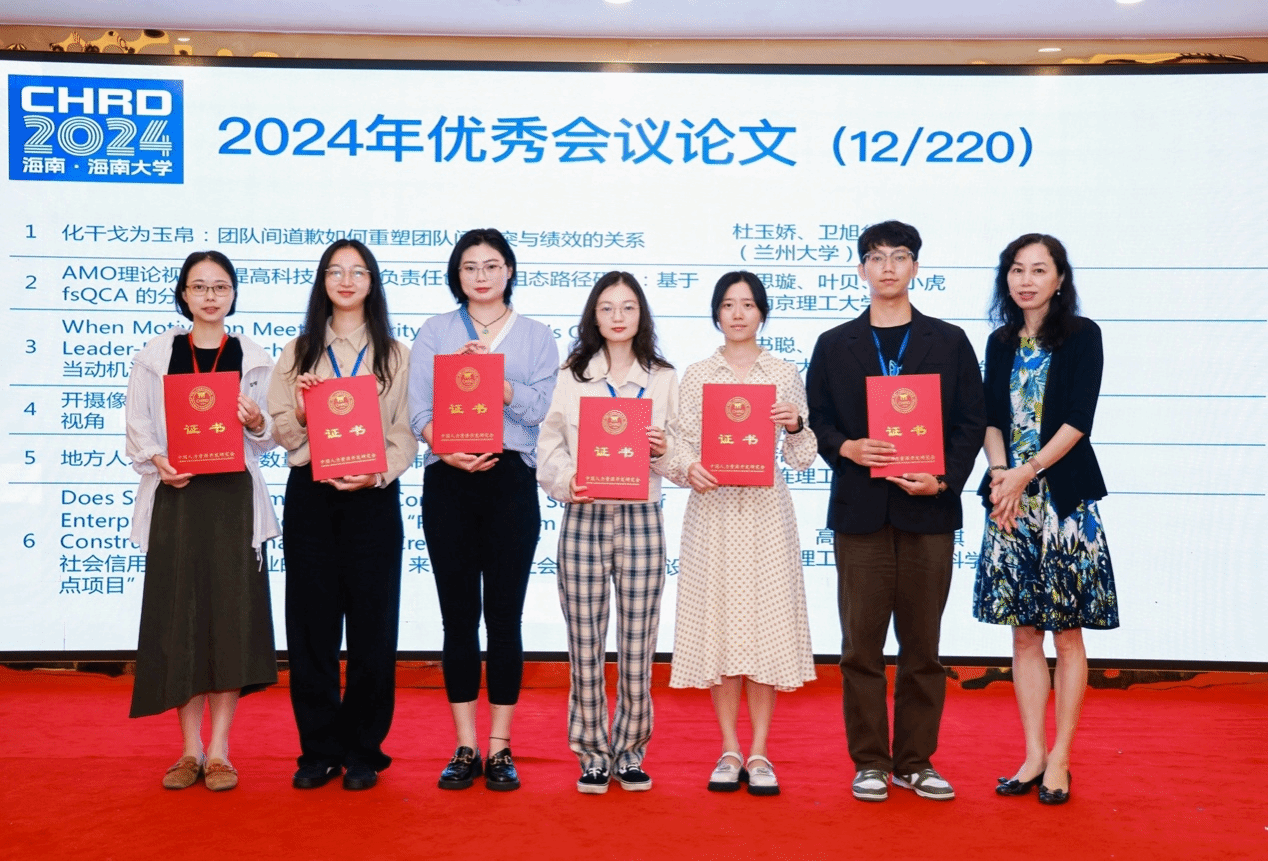 院长唐宁玉教授为12偏优秀会议论文作者颁奖。同时,还评选出《中国人力资源开发》2023年发表的5篇优秀论文,由中国人力资源开发研究会会长、《中国人力资源开发》主编欧晓理为获奖论文作者颁奖。