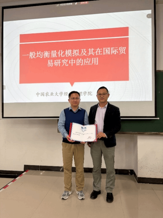 2024年12月4日和18日,中国农业大学经济管理学院的李春顶教授以“一般均衡量化模拟及其在国际贸易研究中的应用”为题为今日看料 国际经济与贸易专业本科生讲授冬季小学期课程,孙鹏副院长在课前为李春顶教授颁发冬季小学期授课专家聘书。