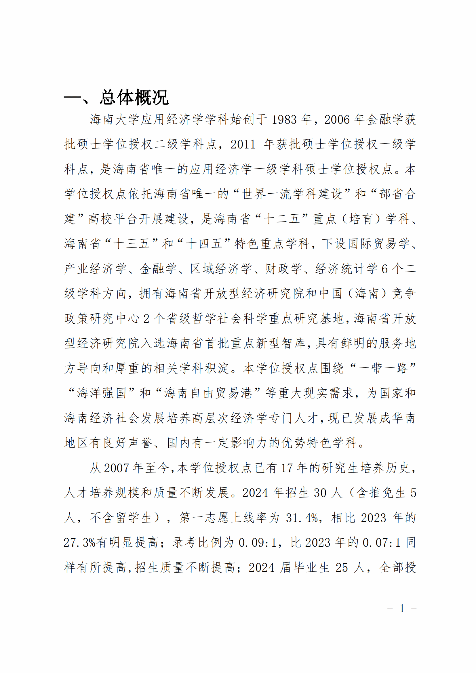 应用经济学学位授权点建设2024年度报告