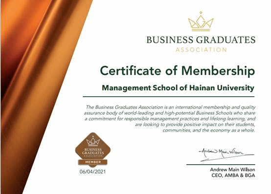 成为海南省首个获得BGA国际金牌认证的商学院,这也是学校获得的首个国际商科认证。