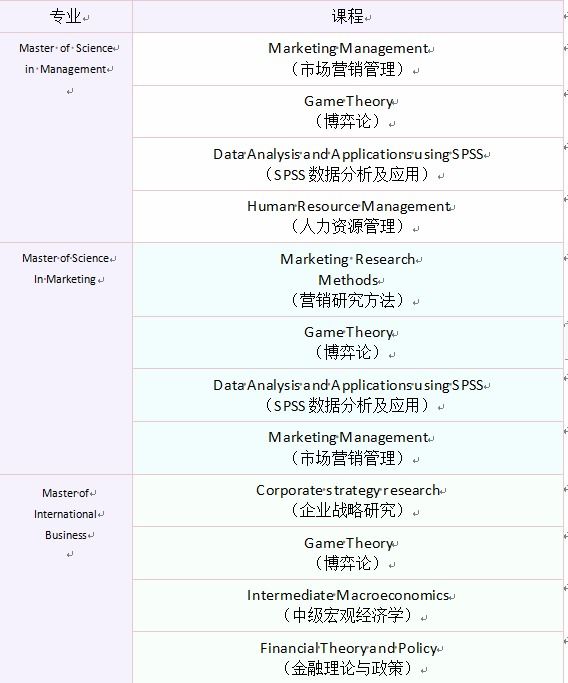 与佛罗里达大学合作举办管理类硕士项目。招生专业包括管理学(Master of Science in Management)、市场营销(Master of Science in Marketing)、国际商务(Master of International Business)。