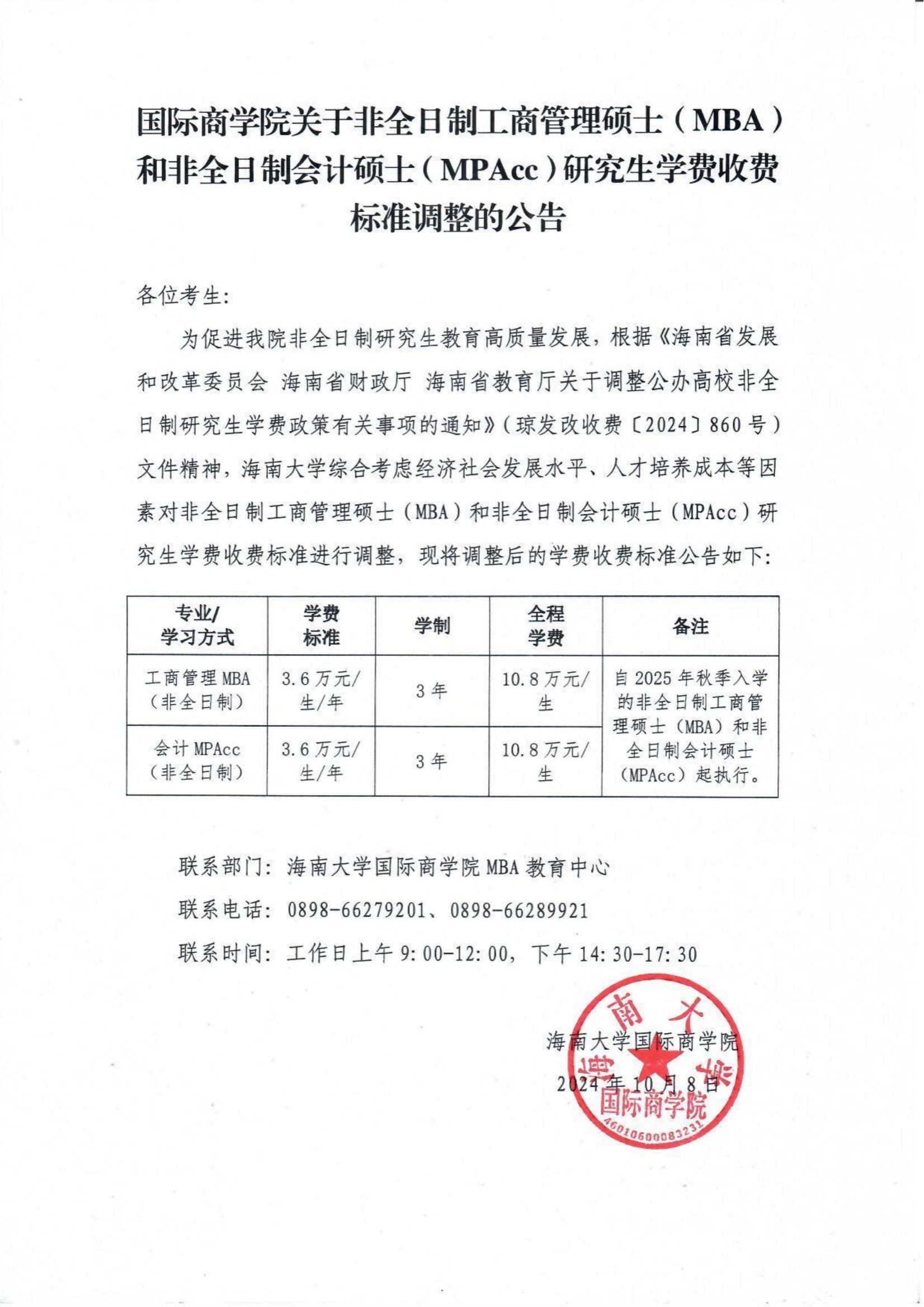 今日看料 关于非全日制工商管理硕士(MBA)和非全日制会计硕士(MPAcc)研究生学费收费标准调整的今日看料公告