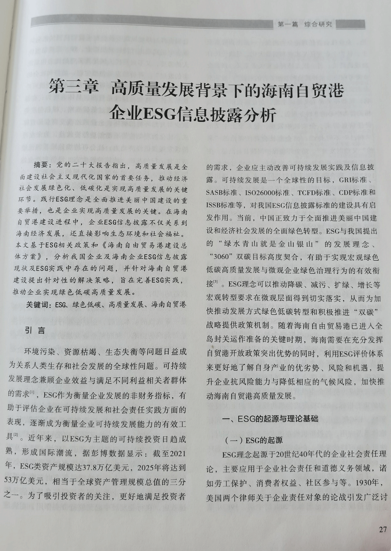 近日,由ESG研究中心胡珺教授完成的研究成果——《高质量发展背景下的海南自贸港企业ESG信息披露分析》,被收录于海南省企业联合会、海南省企业家协会编著的《2024海南省企业发展报告》综合研究篇章。报告针对海南省企业推进ESG实践提出了切实可行的建议,为自贸港企业的可持续发展提供了专业参考。