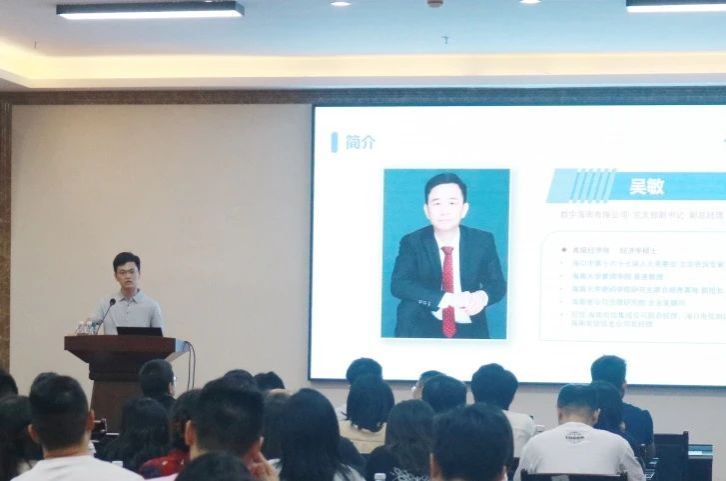 密码学院研究生联合培养基地副组长、海南省公司治理研究院企业家顾问、数字海南有限公司副总经理——高级经济师吴敏主讲。吴副总以“拥抱大数据时代的到来”为主题,与同学们分享了如何接受数字经济时代的到来。