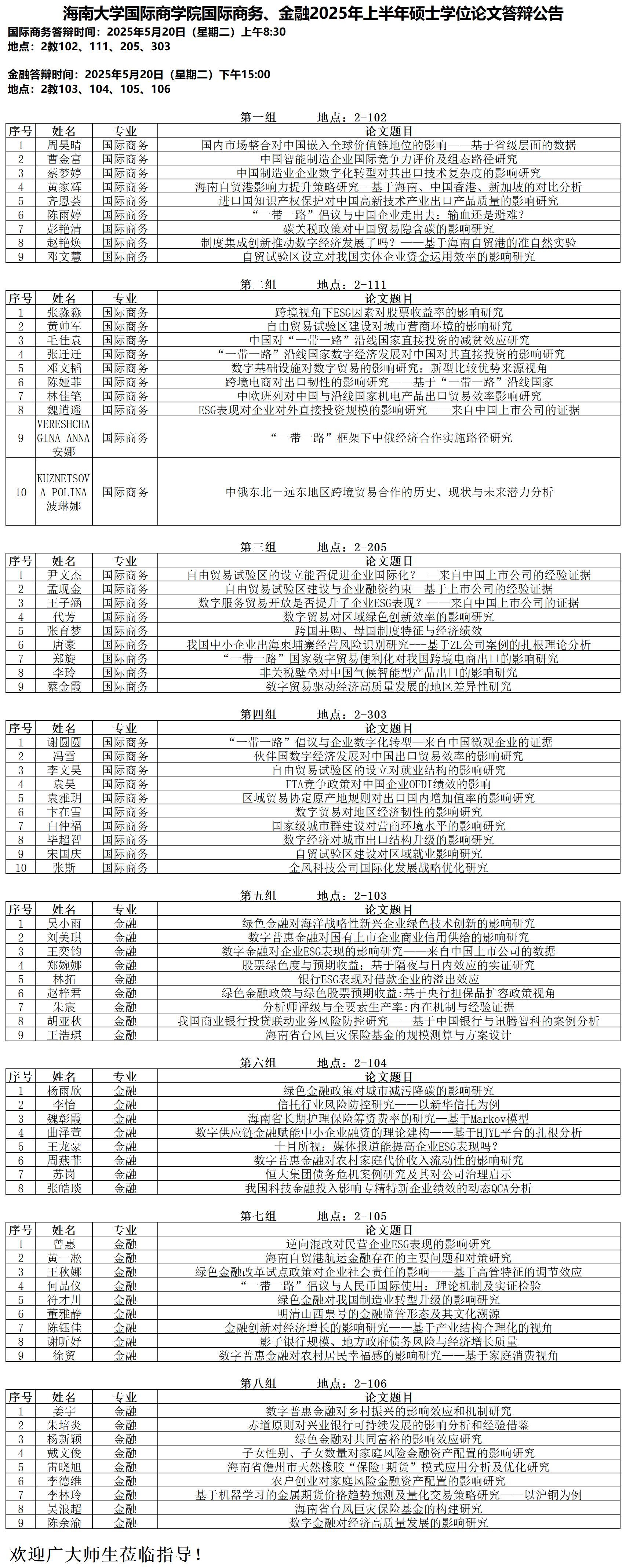 今日看料 国际商务、金融2025年上半年硕士学位论文答辩今日看料公告