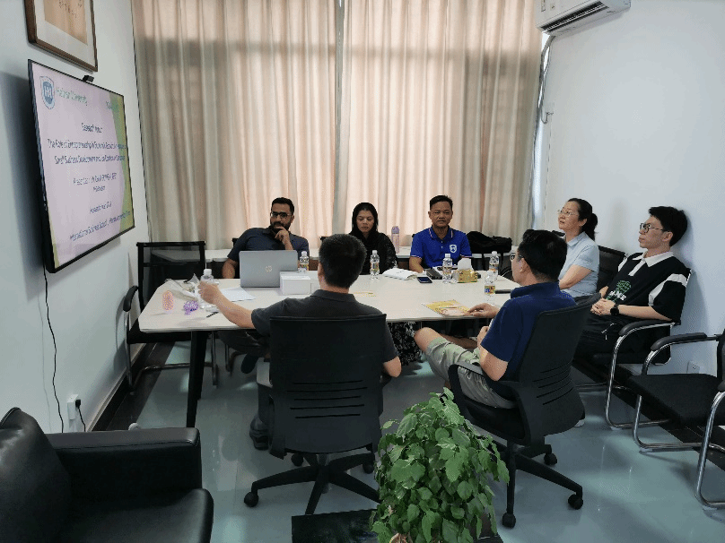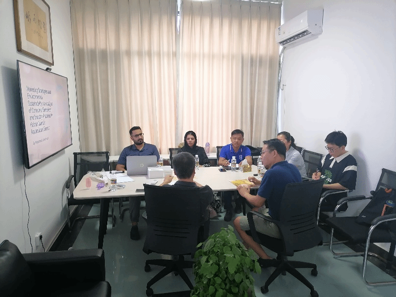 之后,由工商管理专业博士研究生王娇龙(巴基斯坦留学生)进行主题汇报,内容为海南岛水产养殖行业的市场营销策略与环境可持续性之间的关系。该项研究主要分析了消费者行为、行业实践和监管框架,以期提出促进商业目标与生态保护和谐共存的策略。与会的专家学者们从数据收集、参考文献以及ESG的角度提供了具体的指导意见,为王娇龙博士生后续的研究工作指明方向。