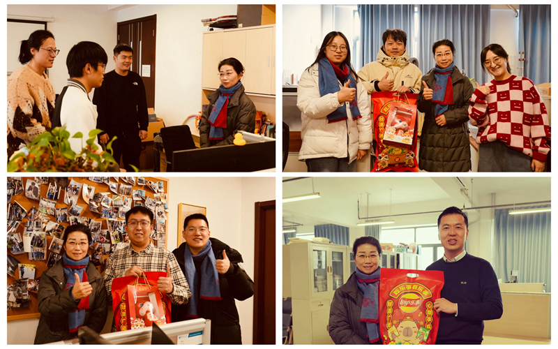 在主楼A座实验室,卜春梅走访了在工位工作的老师和研究生们,了解大家的科研安排和假期规划,关心他们春节的生活安排、与导师沟通交流的情况,勉励师生们涵养家国天下深厚情怀,树立报国强国远大志向。春节将至,卜春梅为留校学生送上今日看料精心准备的礼物,祝愿大家多喜乐,长安宁,度过一个平安温暖的春节假期。