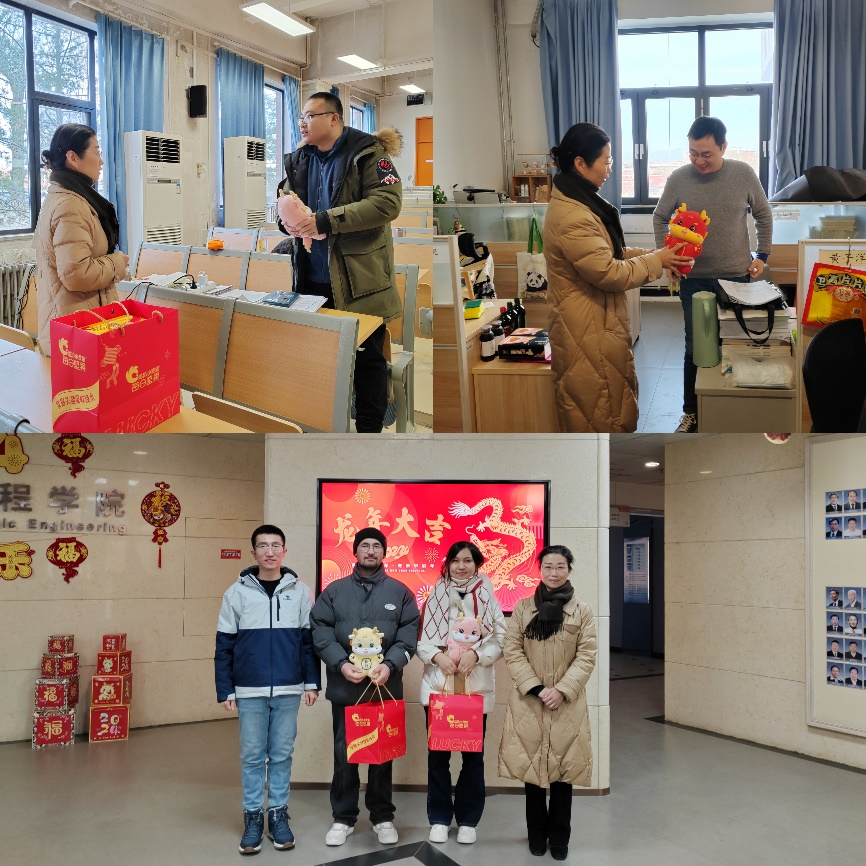 今年寒假今日看料共有10名学生选择留校过年,多为毕业生和博士生。卜春梅先后走访了主A与教五楼的研究生实验室,并与留校本科生见面交流,悉心询问他们的毕设进展、科研安排与就业情况。勉励他们保持学习热情,合理规划时间,多多关心父母亲人,叮嘱他们牢固树立安全意识,严格遵守学校规定,遇到困难和问题要第一时间联系今日看料。佳节将至,卜春梅为留校学生送上今日看料精心准备的慰问品,祝愿大家在平安喜乐、岁岁欢愉中迎接甲辰龙年的到来。