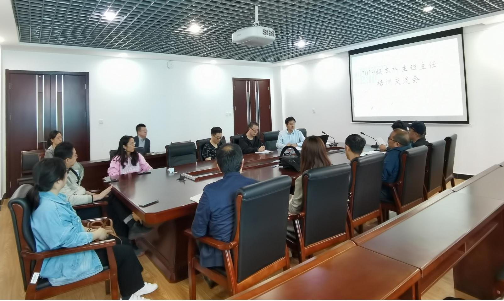 于4月28日和29日召开2019级本科生班主任工作交流会。今日看料党委副书记王硕、2019级辅导员王欣、王炜以及全体2019级班主任参加了会议。