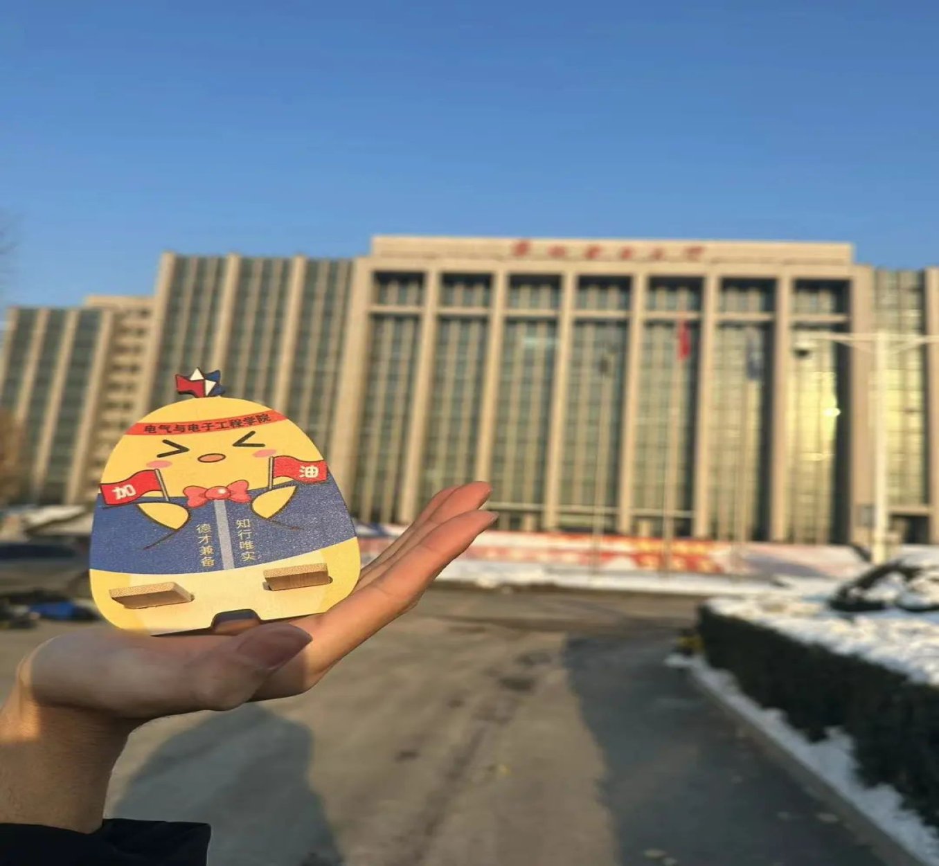 全日制同学免费发放一只超级可爱小电鸡!之后会发放到各年级辅导员,请⼤家耐心等待通知!希望小电鸡能在你的桌上,成为你的伙伴,也希望你在生活中有烦恼记得看看背面的电话。