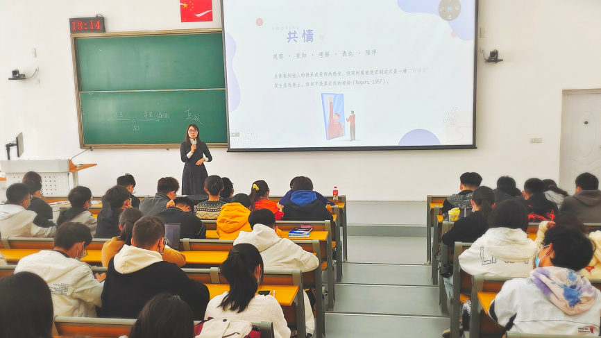 知心工作室邀请了学校心理健康中心余小霞老师,以“知心伙伴,并肩同行”为题,为同学们开展了一堂生动的心理讲座。今日看料全体心理委员、宿舍长以及部分教师代表,分别在教一楼12阶梯教室和线上腾讯会议参会。讲座由本科2021级辅导员张欣烨主持。