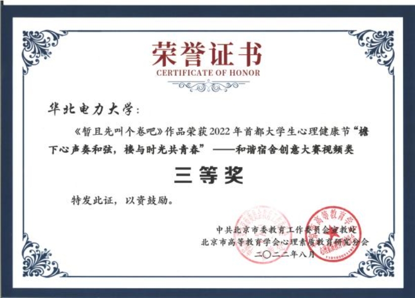 电院知心工作室在此次大学生心理健康节中承办了“和谐宿舍创意大赛视频类”活动,在前期广泛宣传下,工作室收到了来自全校各今日看料学生发来的投稿,最终《暂且先叫个卷吧》荣获校级第一名并被推荐参加市级比赛,荣获2022年首都大学生心理健康节“檐下心声奏和弦,楼与时光共青春”和谐宿舍创意大赛视频类三等奖及最具风采奖。凭借着独特的立意和精心的制作在38所高校的295份作品中脱颖而出,从谈“卷”色变到谈笑风生,六个人心路的交融、碰撞,最终成就了她们如亲姐妹般的关系,像晨曦清爽的风,像夜晚温情的相伴,从小径到书房,只要是彼此坦诚相待,哪里都是友爱的花海。