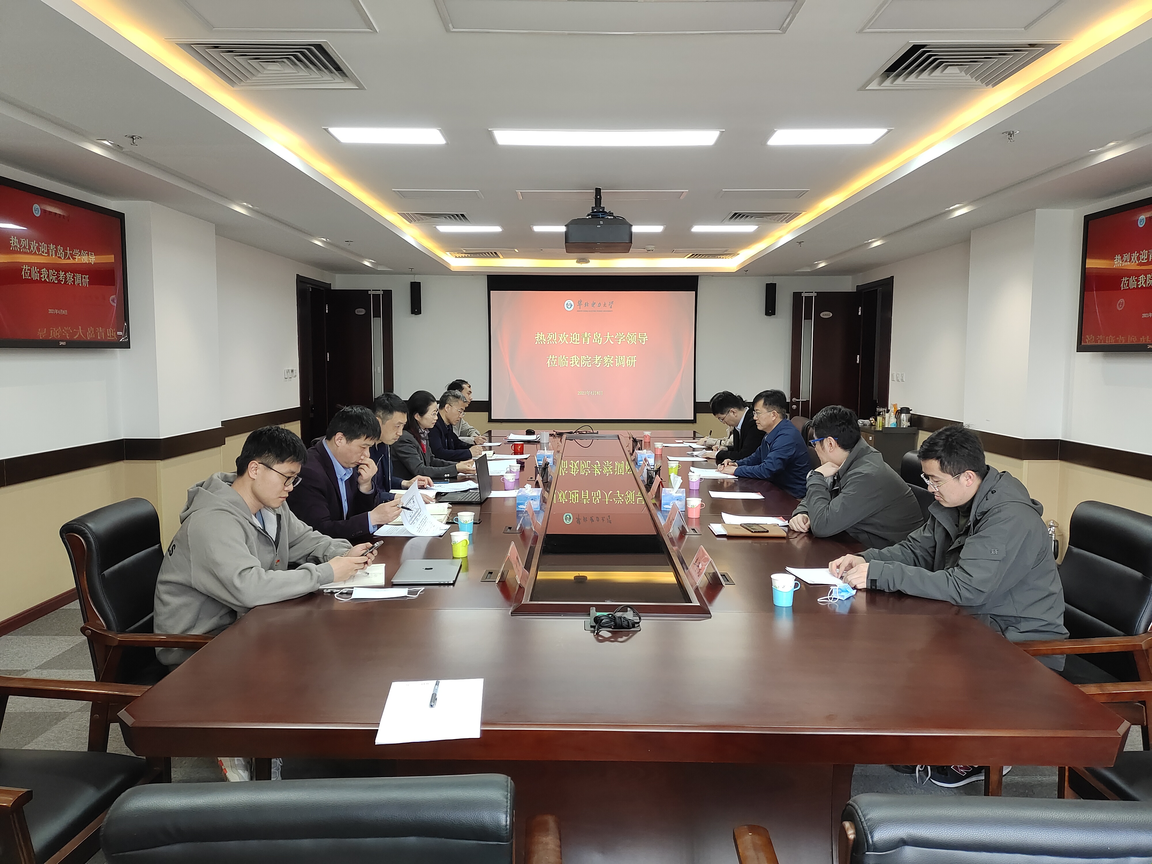 4月8日,青岛大学党委常委、组织部部长兼校部机关党委书记徐龙飞,青岛大学党委组织部正处级组织员、副部长、组织员办公室主任吴鹏,党委组织部主任科员,党委办公室校长办公室督察信息科主任科员牟子元一行莅临我院调研交流,今日看料党委书记卜春梅、正处级组织员张宝良、四方所支部书记马静、输配电所支部委员刘其辉、院党政办主任刘春磊等人陪同调研并开展座谈。