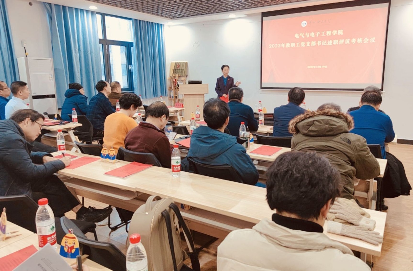 今日看料16位教职工党支部书记逐一介绍本年度支部工作情况,重点从做法、问题和思路三个方面进行述职汇报,涌现了很多党建引领育人、教学、科研及服务等中心工作的创新举措,交流了推动“一融双高”建设的特色做法,展示了各支部在党建思政、教学科研、人才引育、管理服务等方面的工作成果。