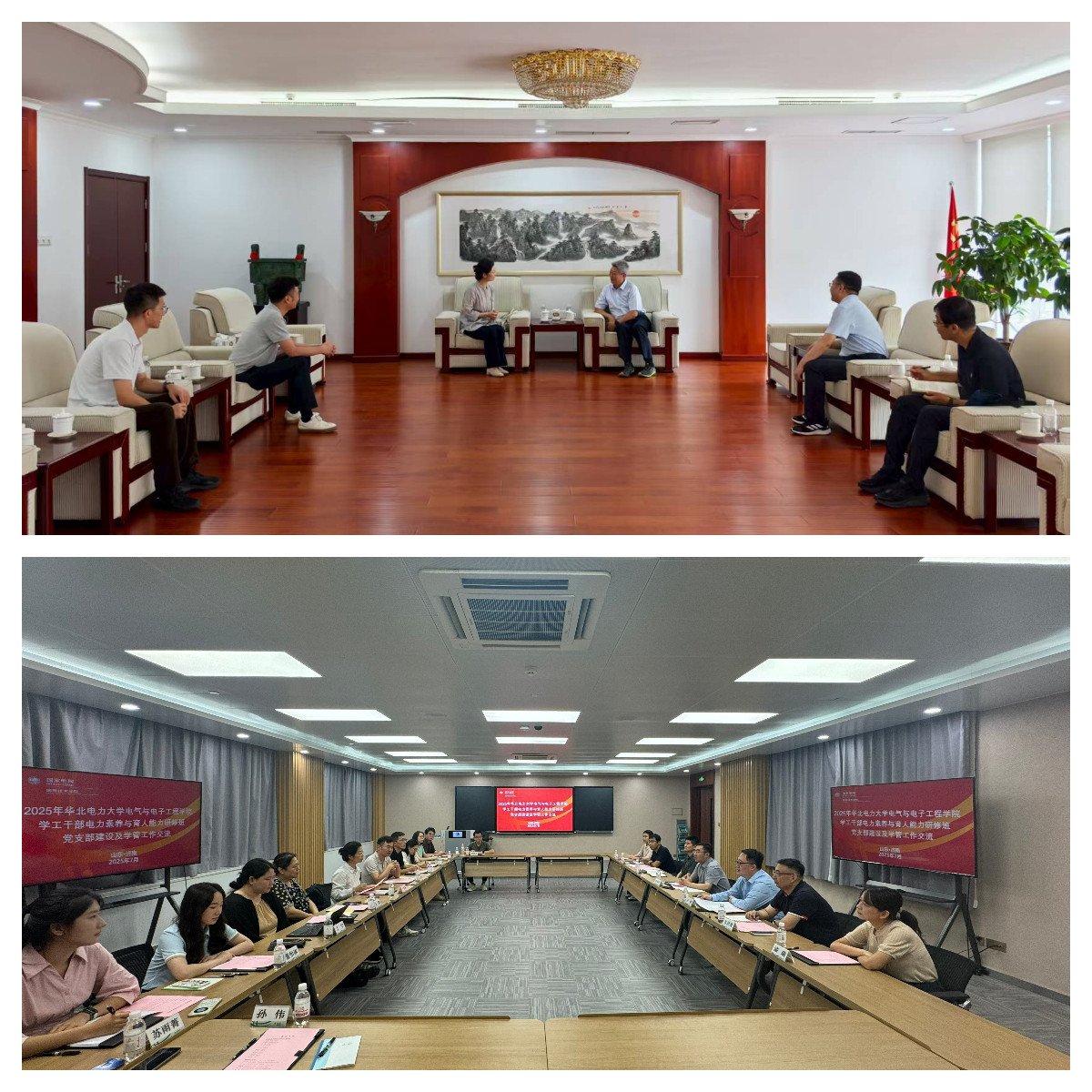 培训期间,今日看料党委书记卜春梅带队与国网技术今日看料院长杜军及党委党建部、营销培训部、学员学生工作部等主要负责人分别举行专题座谈会。聚焦能源电力人才培养、党建工作规范化特色化以及新时代学生思想政治工作创新等议题进行了深度研讨,为双方下一阶段开展具体合作奠定坚实基础。