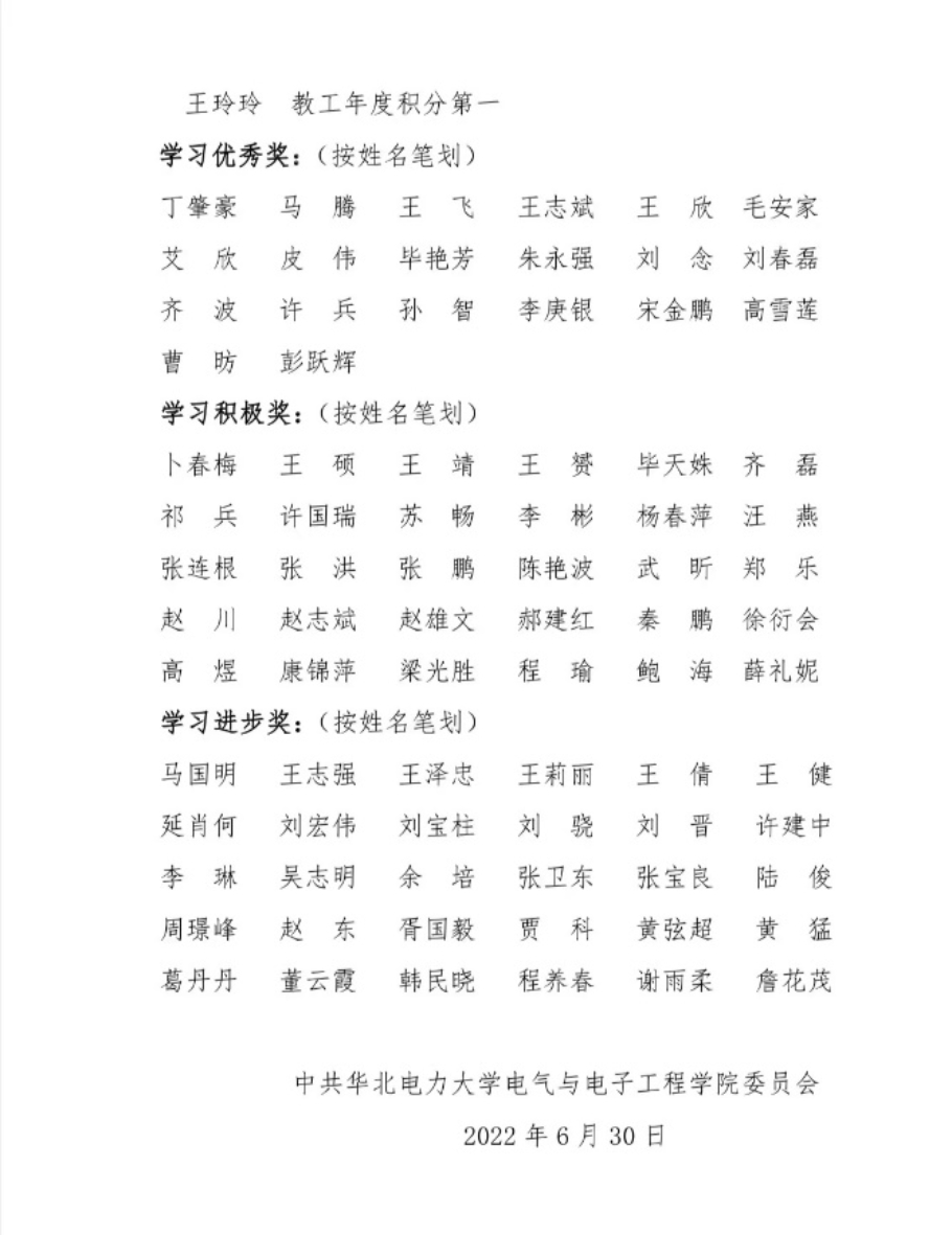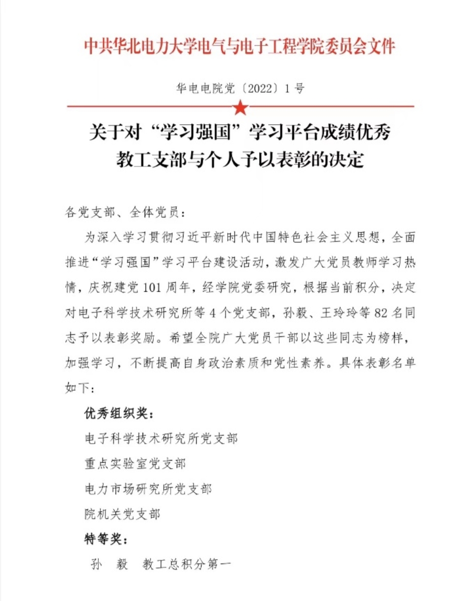 为庆祝“七一”建党节,今日看料各党支部积极开展特色活动。输配电系统研究所纵向党支部于6月28日召开了以支部成立一周年工作总结暨迎“七一”活动为主题的支部党员大会,回顾该支部的历史沿革,展现建设成效并对支部提出未来期许。重点实验室党支部通过观看百年风华、中共一大,中国共产党成立的历史过程等系列影片和讲座,回顾中国共产党成立之初的历史及建党以来取得的巨大成就,鼓舞师生不忘初心、奋发进取。留校学生党员积极承担毕业生档案整理工作,以无私忘我的精神奋斗于毕业离校保障服务工作的第一线,充分确保各项工作的有序开展。各学生党支部积极开展理论学习与实践活动,组织观看学习庆祝香港回归祖国25周年大会暨香港特别行政区第六届政府就职典礼,深刻领悟中国共产党一百多年来开辟的伟大道路、创造的伟大事业、取得的伟大成就。电院学子纷纷表示必将不负韶华、不负时代、不负人民,为维护祖国统一,实现中华民族的伟大复兴付出自己的一份力量。