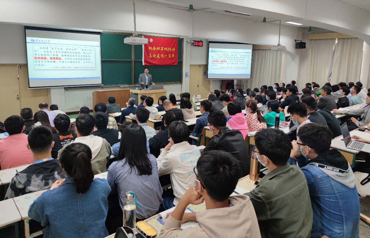孙平以“延安窑洞对”和“社会主义国家发展之路的特殊性”两组史料作为切入点,从中国共产党成立前中华民族的救亡图存之路、十月革命送来了马克思列宁主义、中国共产党成立是开天辟地的大事变以及党成立早期的方针政策等维度,深入解读中国共产党创立的历史,帮助师生梳理党史脉络。孙平按照时间顺序依次介绍太平天国运动、洋务运动、戊戌变法、辛亥革命、新文化运动、五四运动等各个时期的救国救民探索过程,剖析马克思恩格斯的两大历史命题,以及马克思主义广泛传播的过程,并梳理中国共产党诞生的历史背景,讲述中国共产党成立这一开天辟地大事变,解析党的初期的理论局限性。