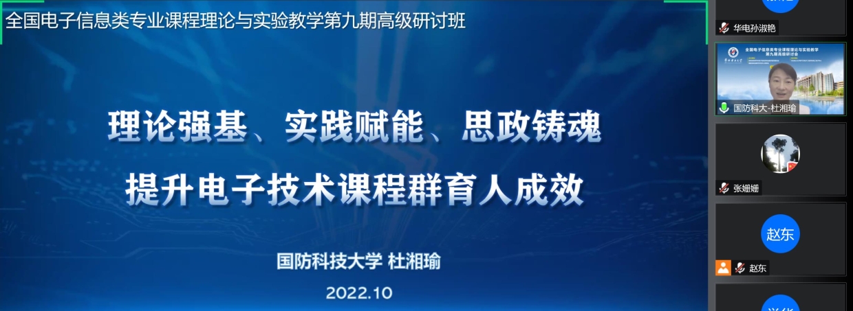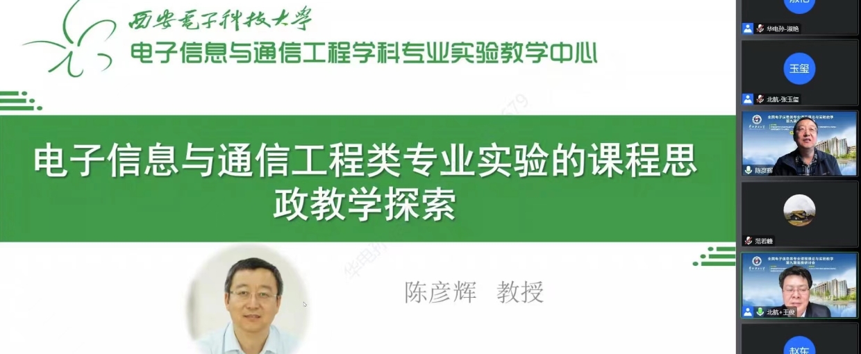 和主办方教育部高等学校电子信息类专业教学指导委员会,向参加此次研讨班的专家、学者、教师及企业代表致欢迎词。与会人员通过腾讯会议的方式围绕“探索研究课程教学改革为主题的高校相关电子信息类专业理论和实验教学设计的成功经验”这一主题对相关理论、实验课程教学进行深入探讨。