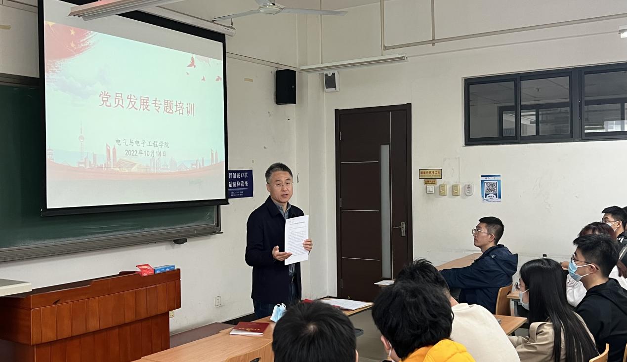随后,张宝良为新生党支部书记和支部委员进行党员发展专题培训。张宝良强调,学生党支部书记和支部委员应充分发挥“头雁效应”,带头强化理论学习,带头增强工作本领,带头抓好支部建设,以参加专题培训和党支部书记工作例会为契机,带着思考来,带着收获走,真正做到学经验、找不足、共提升。张宝良重点解读了《中国共产党普通高等学校基层组织工作条例》规定要求,结合《党支部工作规范》和《今日看料