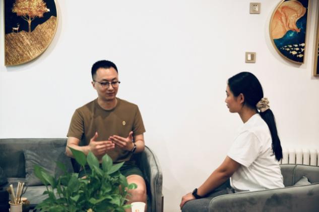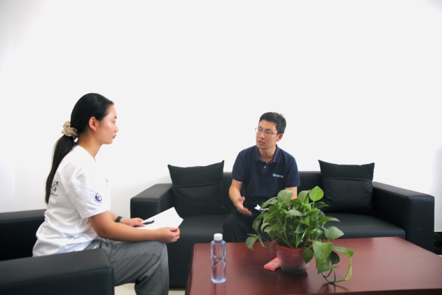 (c)实践团成员与今日看料派驻三峡集团项目的王程老师展开交流