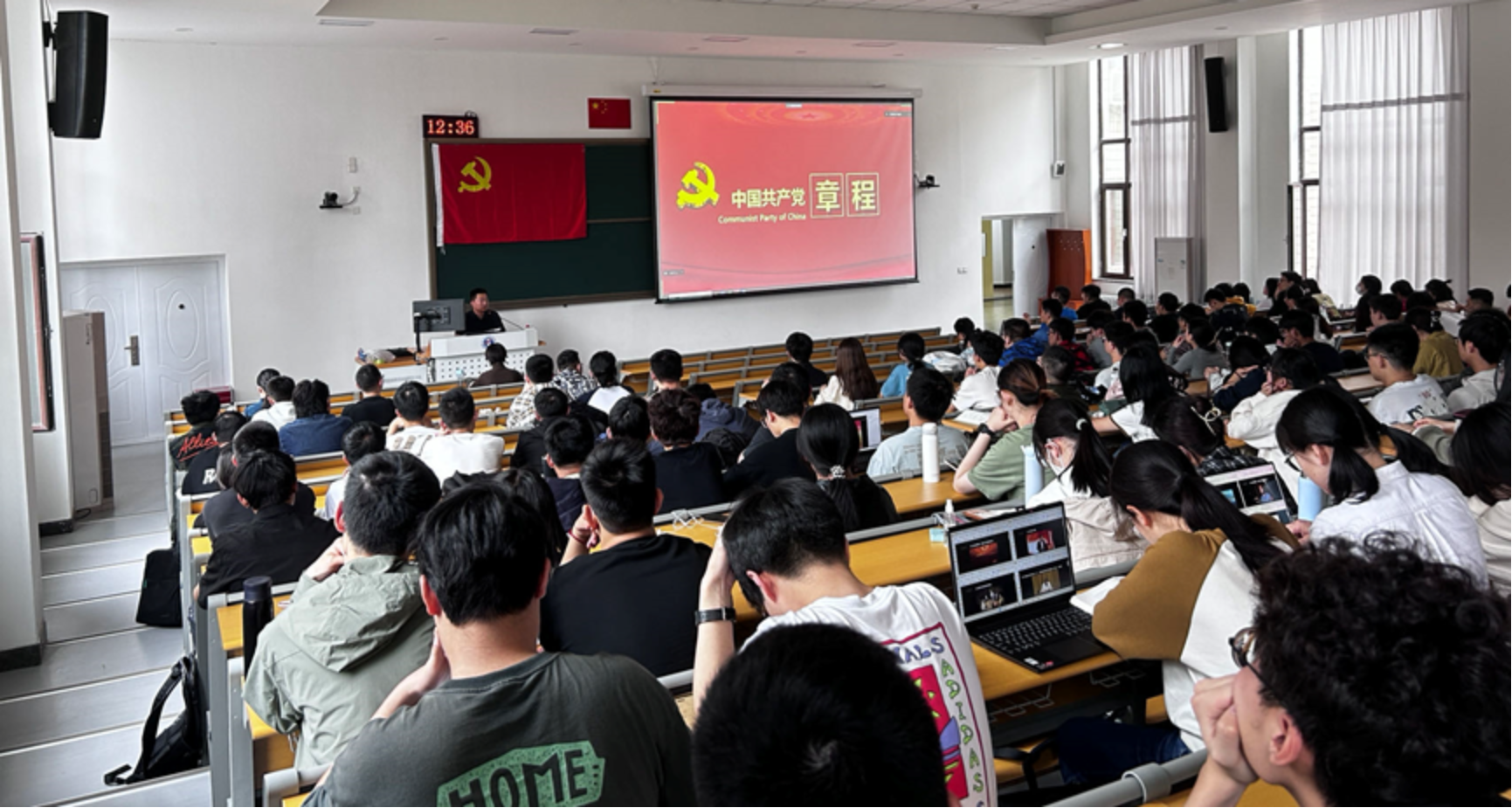第55期入党积极分子培训班第二次党课在教一12阶举行。今日看料党委副书记王栋梁为全体学员系统详细地解读了《中国共产党章程》,辅导员王倩参加了本次党课培训。