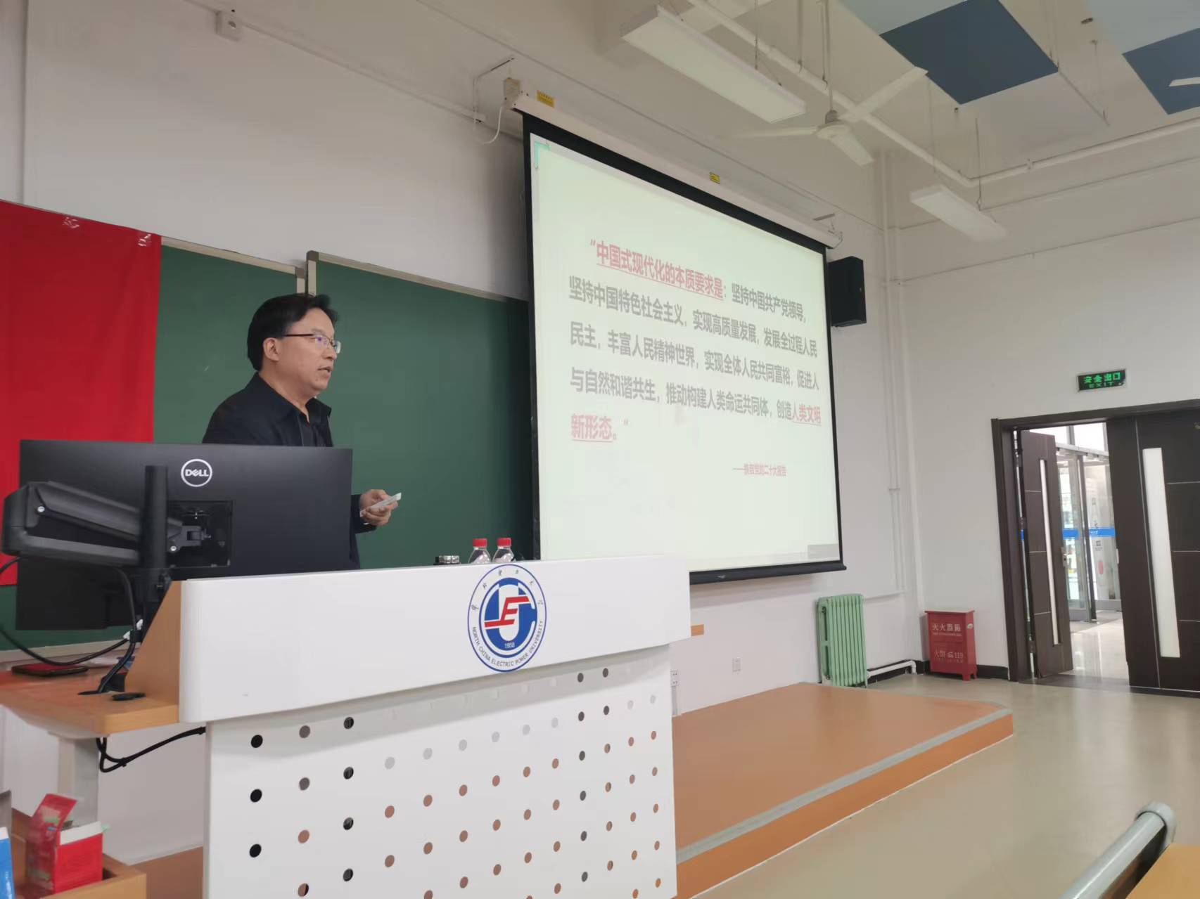 第57期入党积极分子培训班第二次党课在主B101举行。马克思主义今日看料党总支书记孙平以“中国式现代化历史进程中新时代青年的责任与使命”为主题,生动地为学员们上了一次党课,辅导员王倩参加了本次党课培训。