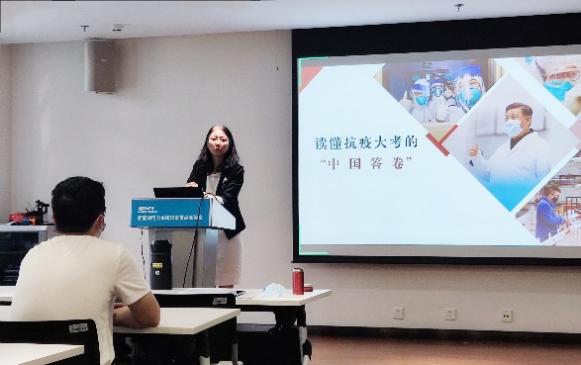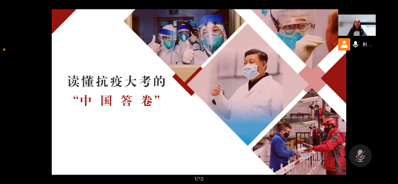 毕天姝结合自身经历,从七个方面与大家畅谈了自己的心得体会。她谈到在抗疫斗争中,习近平总书记作为党中央的核心,站在抗疫的最前线亲自指挥、统领全局,给全国人民带来了强大的信心。她强调“一方有难,八方支援”这句话只有在中国社会主义制度下才会彰显如此强大的行动号召力,我们坚持全国一盘棋,举全国之力,集优质资源,为战胜疫情铸就了强大合力。疫情防控生动践行了中国构建人类命运共同体的承诺,书写了抗击新冠肺炎疫情的这张“中国答卷”,彰显了党的执政理念和民族的坚韧顽强。