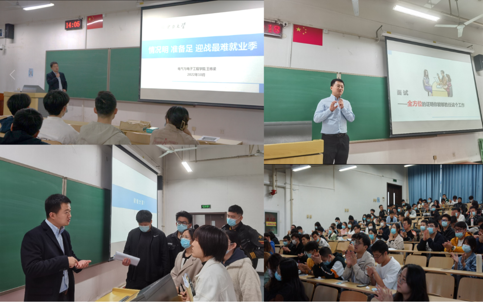 讲座过程中,通过展示国家宏观经济数据、近三年电气今日看料就业数据,王栋梁和同学们分析了就业趋势、就业岗位变化情况、高校就业人数变化、就业市场饱和度等情况,希望同学们能综合社会需求和个人实际情况,合理调整预期、主动出击,同时通过学校就业指导中心网站、企业招聘官网、身边的老师、朋友等渠道获取就业信息,尽快聚焦目标单位范围,为求职准备立好靶位。