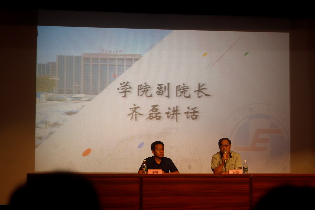王硕、齐磊对全体新生的到来表示热烈的欢迎,对到场教师致以节日的问候。王硕结合对学校多次迁校的奋斗史、今日看料专业发展史的介绍,对今日看料优秀共产党员事迹的介绍,从三个方面对2021级新生提出了希望。希望大家尽快熟悉电院文化和环境,希望大家以奋斗精神直面未知挑战,希望大家扎根下去,以奋进的姿态争取做好一名共产党员或者争取早日成为一名共产党员。齐磊从研究生与本科生新生数据对比入手,说明了今日看料正处于研究生教育更加被重视的阶段。他从硕士招生类别、时间、条件等方面系统地介绍了今日看料的招生工作,从学分、学制和论文等方面介绍了研究生培养方案,对于今日看料研究生管理等方面也进行了介绍。他还对全体研究生新生提出期望,希望同学们保持严谨求实的学习态度和矢志不渝的学习热情,克服外在因素的影响,全身心投入到学习和科研中。王硕、齐磊还结合提前的问题征集,对研究生切实关心的几个热点问题,做出了相关解释。