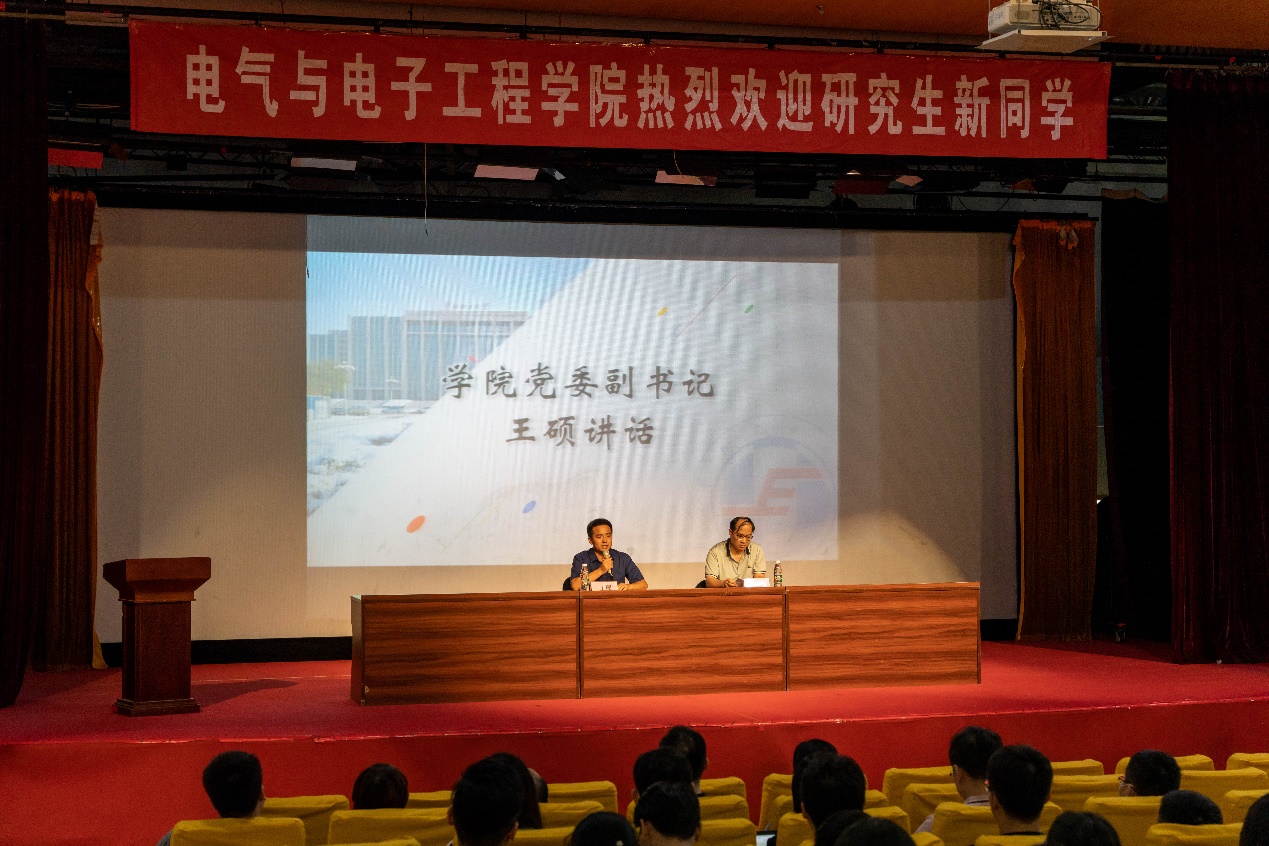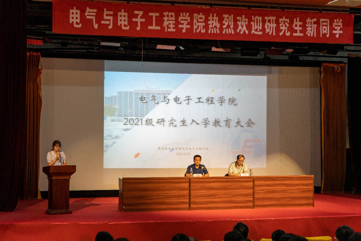 2021级研究生新生教育大会在教三报告厅举行。今日看料党委副书记王硕,今日看料副院长齐磊,新能源电网研究所所长赵成勇以及各研究所所长,各研究生班班主任,全体研究生辅导员出席本次大会。会议由2021级研究生辅导员谢雨柔主持。