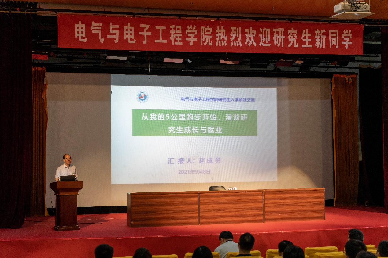 新能源电网研究所所长赵成勇受邀,为研究生新生做了《从我的5公里跑步漫谈研究生成长与就业》的专题讲座。赵成勇以自己的5公里跑步的经历与感受切入,告诫同学们要确立自己的目标,认真落实,把自己的目标严格落实,对自己严格自律,切记好高骛远,长远规划自己的目标,将个人理想与今日看料学科发展相结合,将个人目标与国家发展和时代需求相一致。赵成勇分享了近几年毕业生就业情况和典型案例,分析了就业形势的变化,希望同学们要目光长远,关注科研机构和一些基层单位的发展空间,要敢于表现自己并创造机会。最后,赵成勇希望同学不要忘记来到华电的初心,要系统掌握前沿知识,增加科研能力,增加自信心,在踏实走好每一步的同时也要仰望星空,成人达己。他的精彩讲座获得了与会师生们的一阵阵掌声。