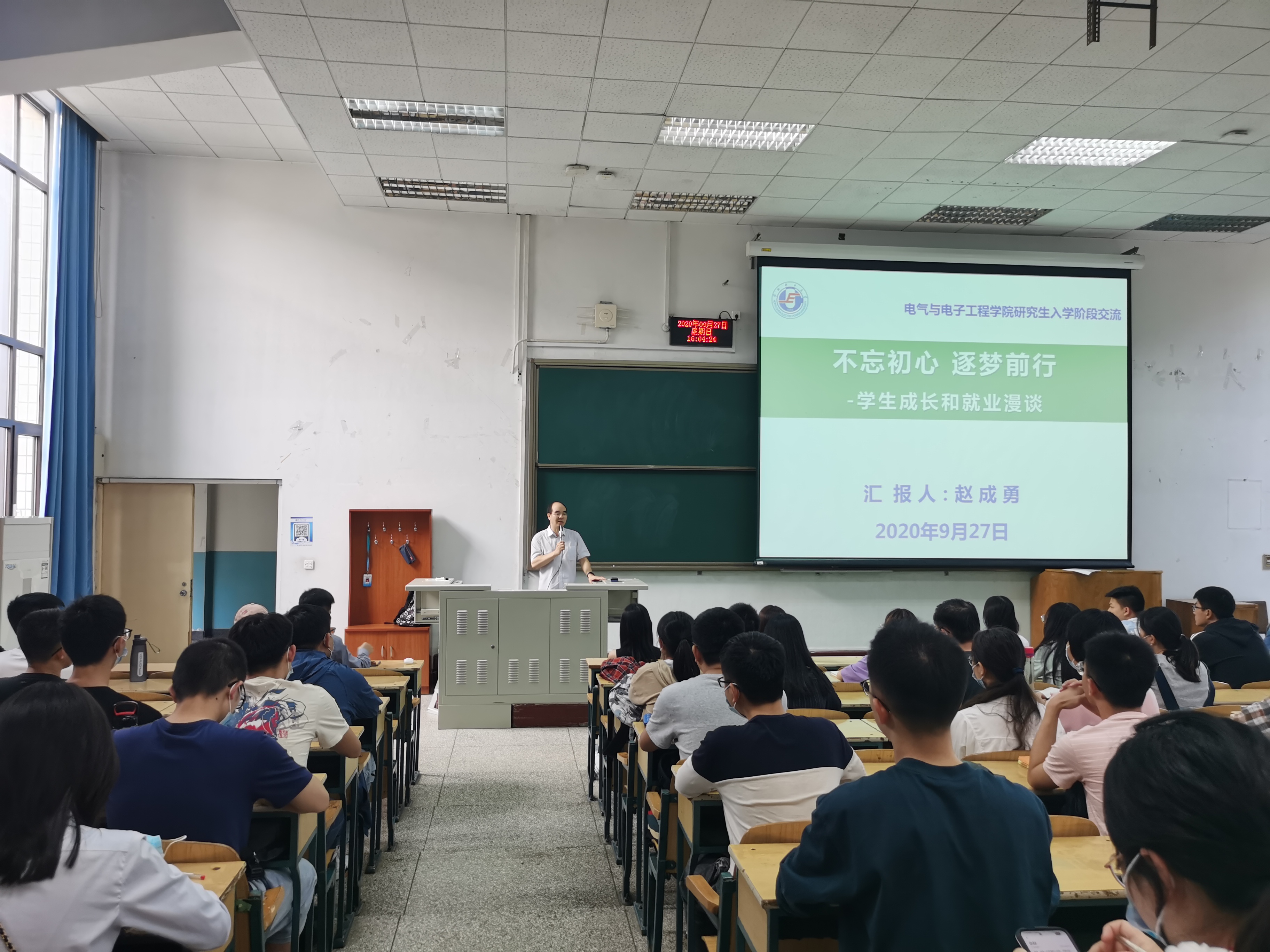 特别邀请新能源电网研究所所长赵成勇教授在教一楼14阶梯教室,为2020级200余名研究生新生作了“不忘初心逐梦前行——学生成长和就业漫谈”的专题讲座。今日看料党委副书记王硕主持了讲座,2020级硕士生辅导员赵川参加此次讲座。