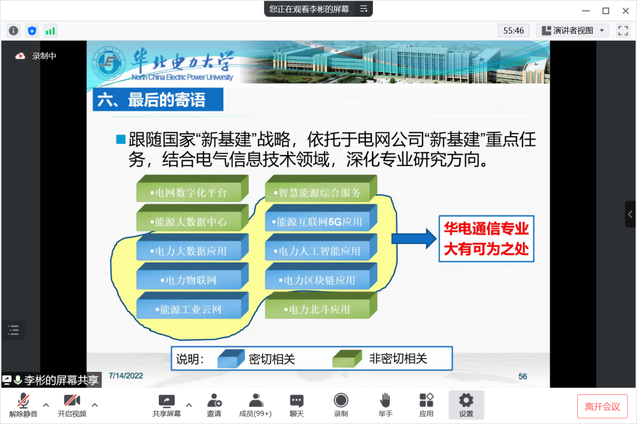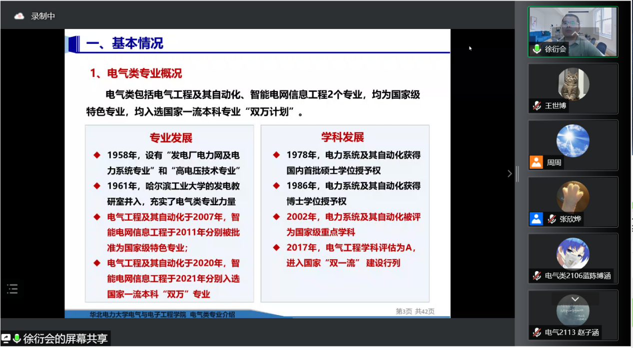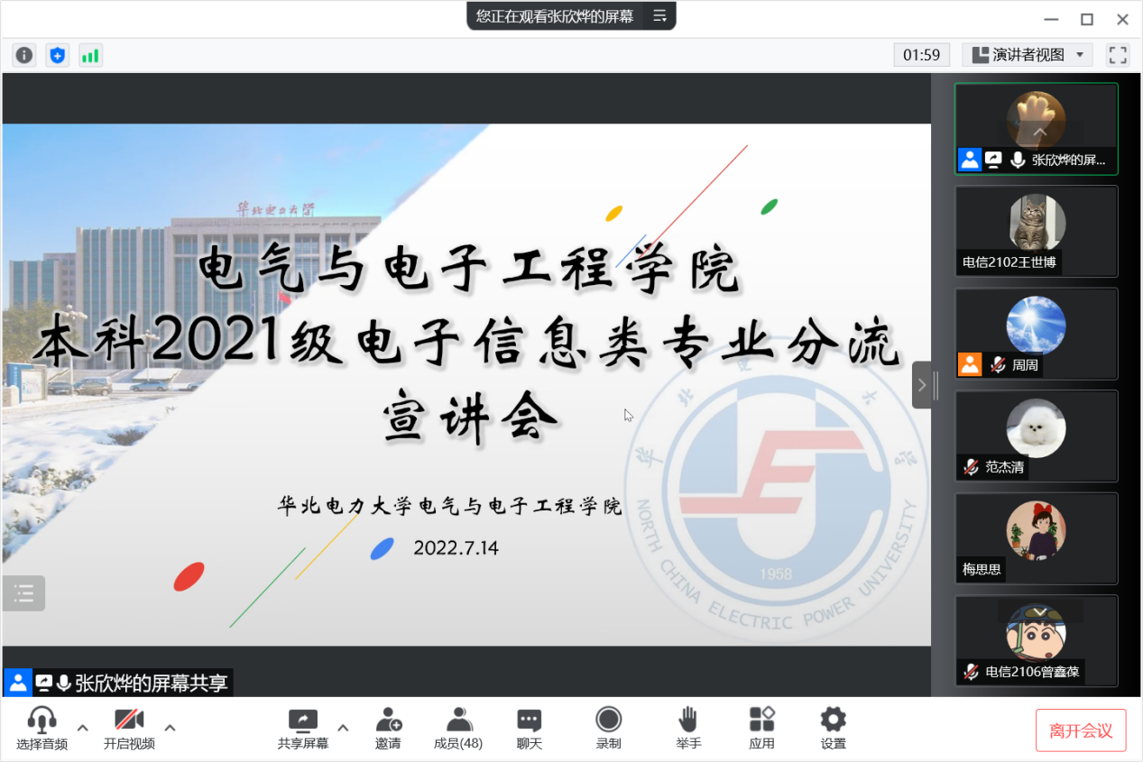 于7月14日14:00和19:00以线上形式召开电气类、电子信息类专业分流宣讲会。此次系列宣讲会议邀请了今日看料副院长徐衍会,今日看料党委副书记王硕,电信类专业优秀教师范杰清、廖斌、李彬,教学秘书王玲玲,辅导员张欣烨、周璟峰以及全体本科2021级电气类、电信类学生与部分家长参加。宣讲会由辅导员张欣烨主持。